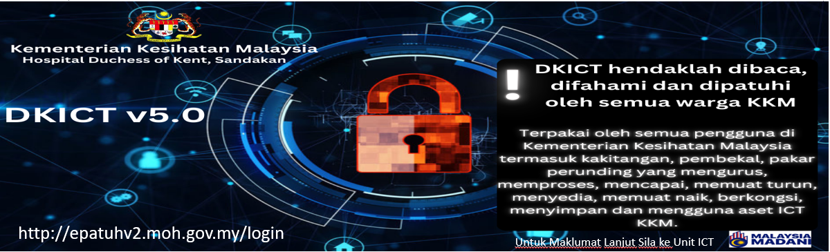 Pihak Hospital Duchess of Kent, Sandakan tidak akan bertanggungjawab ke atas sebarang kehilangan atau kerosakan yang diakibatkan oleh penggunaan maklumat yang dicapai daripada portal ini