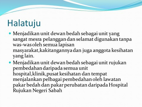 5.1 Unit menyediakan khidmat pra-anestesia di wad-wad bagi kes-kes elektif sehari sebelum pembedahan dijalankan, anesthesia atau pembiusan sewaktu pembedahan dan penjagaan selepas pembedahan di ruang pemulihan.